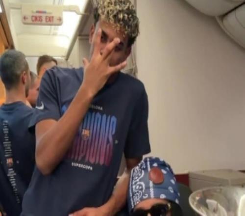 庆祝夺冠!巴萨官方社媒晒球员在飞机上与奖杯合照